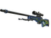 The AWP | Corticera in CS2 (CS:GO) showcases a botanical-inspired design featuring deep green foliage and a blue background. The AWP | Corticera finish offers consistent patterns with minimal variance between individual drops.