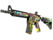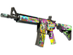 The M4A4 | In Living Color finish bursts with vivid neons, intricate graffiti artwork, and striking cartoon-like motifs. This chaotic fusion creates an unmistakable visual identity that stands out on any server.